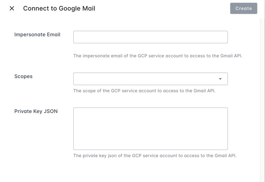 - Create a service account in your target GCP project for Google Mail integration.